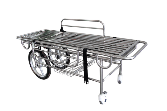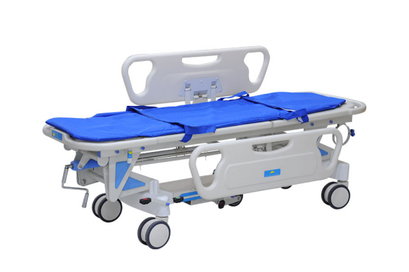 急診搶救室專為搶救病患設(shè)置,危重危急型患者第一時間被送入搶救室。應(yīng)考慮使用的方便、快捷、利于操作,搶救室的物品及器械嚴格按患者身體使用部位、無菌區(qū)及污染區(qū)合理擺放。無菌柜功能分區(qū)明確,柜內(nèi)物品擺放需固定、整齊、標簽明顯清晰。集成治療車可分三層:上層急救藥品分類擺放,如抗體休克、中樞興奮藥、止血藥、解毒藥、鎮(zhèn)靜藥等;中層擺放無菌器材,如輸液器、輸血器、注射器、套管針等;下層擺放吸氧管、導尿管、胃管、敷貼、網(wǎng)帽、手套等。室內(nèi)一般擺放 1~2張多功能搶救床。搶救床需配有萬向腳輪和自動升降裝置,可直接推送患者。床面設(shè)計應(yīng)符合人體曲線,腳剎車系統(tǒng)穩(wěn)定,腳輪設(shè)置隔音,設(shè)有可向下隱藏、向上固定的護欄,同時具有調(diào)節(jié)背板和腳板角度、床位可整體傾斜、升降等功能,給重癥患者提供良好的恢復條件,如圖所示。