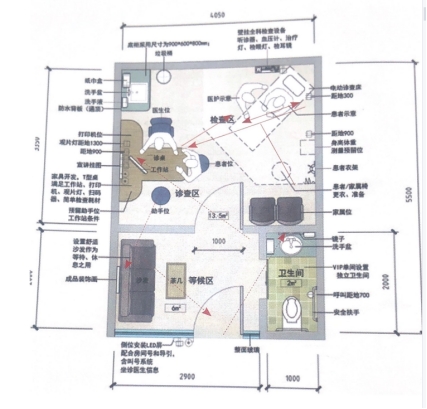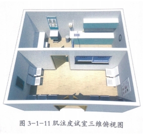 肌注皮試室是進(jìn)行肌肉注射和皮膚敏感試驗(yàn)的治療室,應(yīng)滿足坐姿、臥姿注射的功能需求,分設(shè)座椅區(qū)和床位區(qū),同時(shí)設(shè)置一間觀察室,以方便對(duì)患者進(jìn)行治療觀察,并對(duì)發(fā)現(xiàn)不良治療反應(yīng)的患者及時(shí)處理。如圖所示。