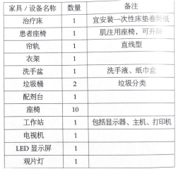 設(shè)置注射用座椅和治療床。根據(jù)醫(yī)院患者流量配置,一般設(shè)置一張治療床和