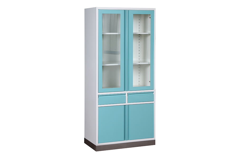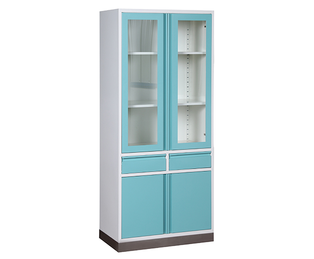 上雙開玻璃門,下鋼制對(duì)開門,帶抽屜,上二下一隔板,可調(diào)節(jié)